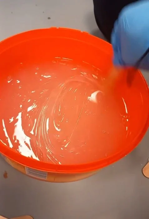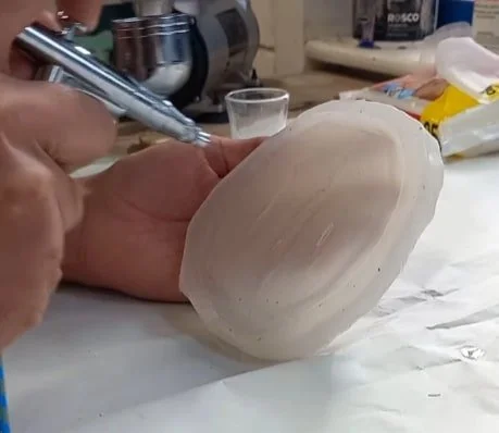 Thin layer of cap plastic is sprayed over the mould before pouring in silicone to make the prosthetic.